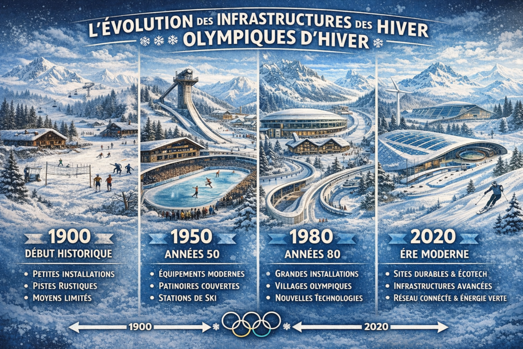 Pendant plusieurs décennies, le modèle dominant reste celui de la démonstration : chaque édition cherche à marquer les esprits par des constructions emblématiques et des prouesses organisationnelles. Les stations de montagne s’équipent, les sites s’agrandissent, la capacité d’accueil augmente. Les Jeux sont alors perçus comme un moteur de développement économique et touristique.